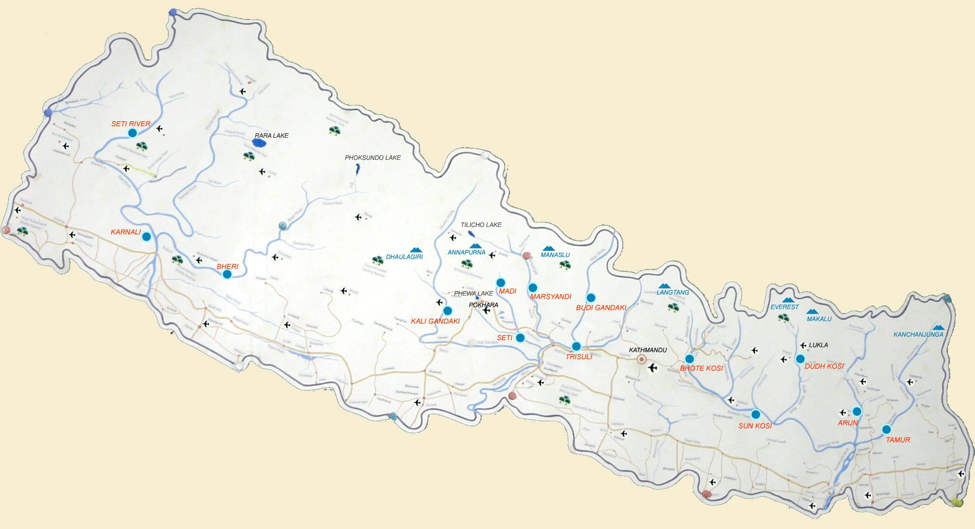Map of nepal showing rivers. Nepal river map (Southern Asia - Asia) to print. Nepal river map (Southern Asia - Asia) to download.
